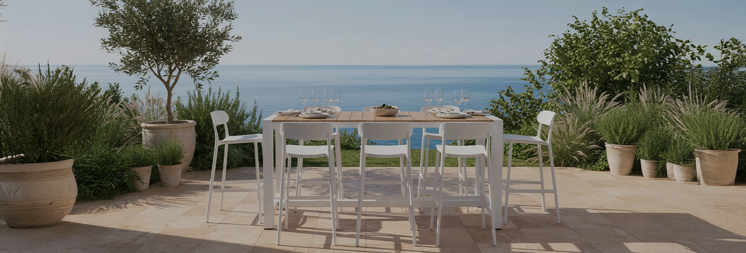 Premium counter-height tables merging Mediterranean charm