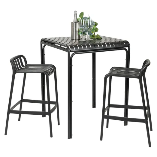 Is it just us, or are French wine bars popping up in every suburb? Or is it a case of you see what you want to see… These Luisa bar tables, with handsome curves and flat base, would blend in beautifully at said wine bars or an Aussie brewery with exceptional taste. The tables are slatted and powder-coated aluminium in black, lightweight and built for any condition, so they work well in outdoor spaces.