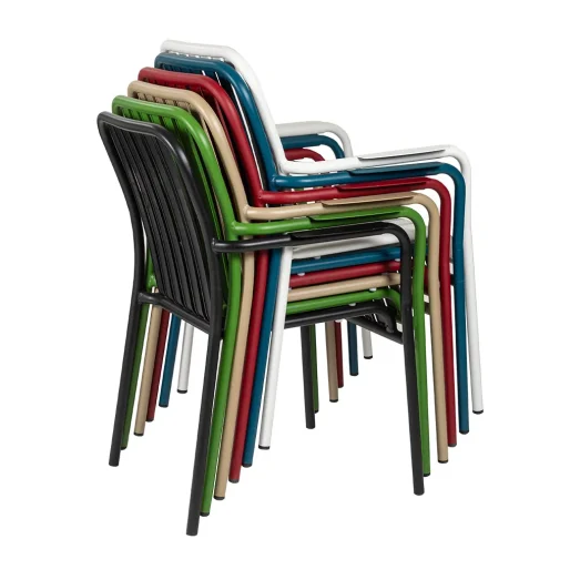 Like an Olympic marathoner, some things are best strong, yet lightweight. In a kaleidoscope of colours, these chairs are perfect for outdoor settings with durable aluminium frames and super light for easy stacking. Also available as chair.
