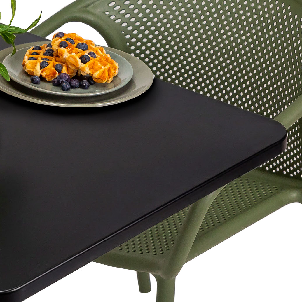 Otto’s base is E-Coated steel for all-weather resistance, with a polypropylene top. Available in round and square dining tables and round bar table. Add Chairforce’s everyday low pricing for a hard-to-resist dining option. Also available in round dining table and round bar table.